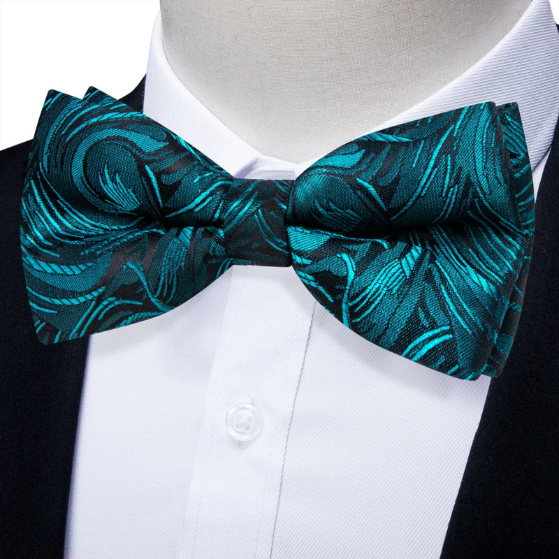 Blue Green Jacquard Pre-tied Silk Bow Tie
