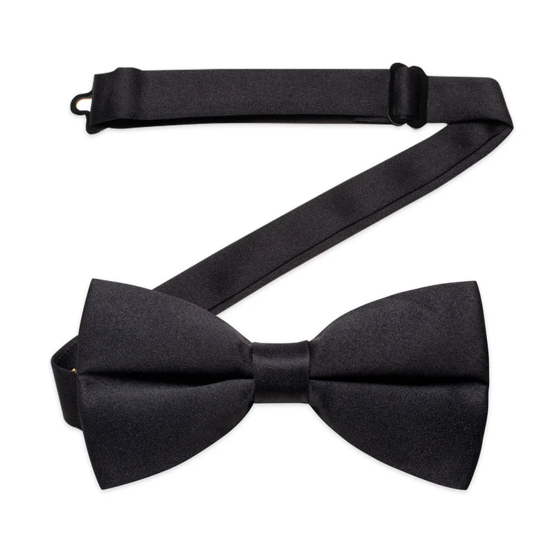 Solid Black Formal Pre-tied Silk Bow Tie