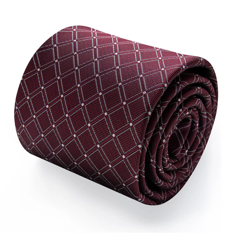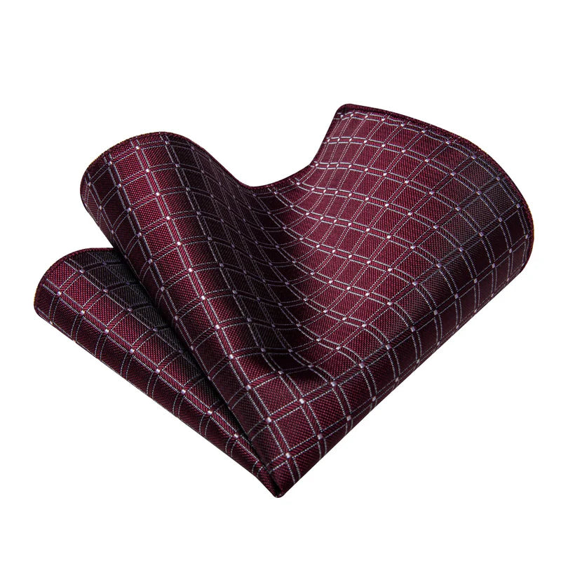 Burgundy Plaid Silk Necktie Pocket Square Cufflinks Set