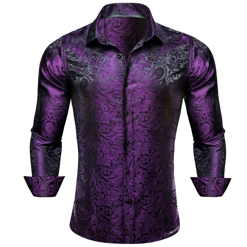 Burgundy Red Novelty Silk Long Sleeve Shirt